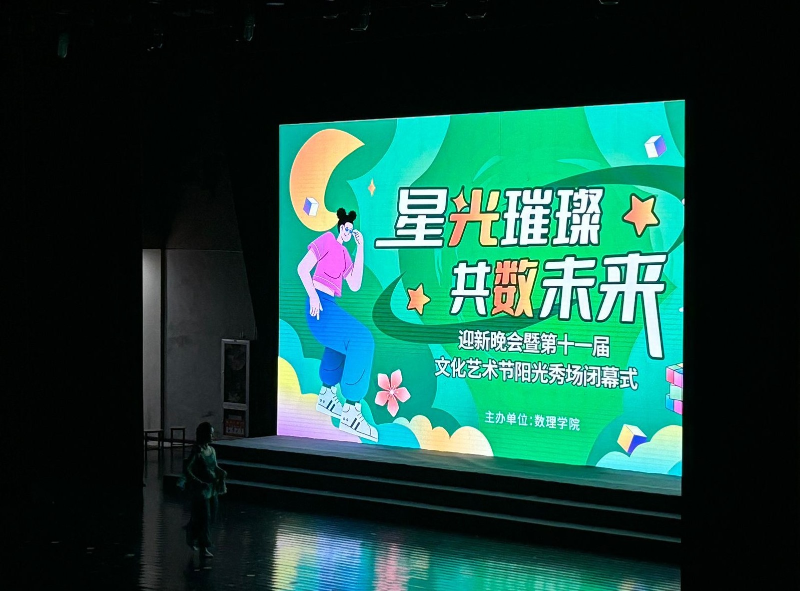 12月1日晚,我校數(shù)理學院舉辦了主題為“星光璀璨,共數(shù)未來”的迎新晚會。一共分為三個篇章,分別為“與理相遇,共赴美好”、“勵青春志,創(chuàng)數(shù)理夢”和“揮灑青春,逐夢數(shù)理”。大一新生們?nèi)杖找挂箿蕚涞墓?jié)目最后呈現(xiàn)的非常完美,朗誦《青春向黨,強國有我》展現(xiàn)了大一新生勵志奮發(fā)圖強的決心;小品《天上不會掉餡餅》展現(xiàn)了大一新生始終牢記防詐騙,不會輕易相信來路不明的網(wǎng)站;武術(shù)《精忠報國》展現(xiàn)了大一新生的斗志;樂器串燒《望千年》中吹簫彈古箏展現(xiàn)了大一新生多才多藝的一面……最后老師們和學長學姐們?yōu)樾律鷤児餐R唱《永遠都會在》,向新生傳達在大學里你永遠都不會只是孤身一人,有同學的陪伴,有學長學姐的照顧,與此同時還有老師的悉心問候。