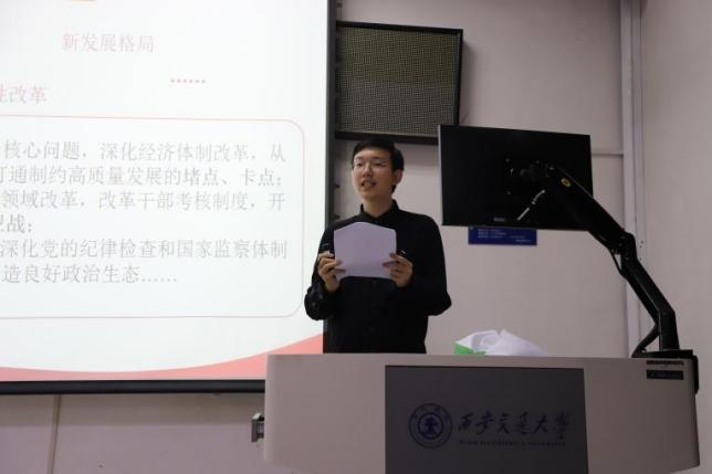 激蕩征程永向前:黨的二十屆三中全會精神宣講會議邀請了西安交通大學學生微宣講團成員吳子傲“磅礴偉力激蕩征程向前——解讀進一步全面深化改革”中國共產黨二十屆三中全會精神宣講。他以飽滿的熱情和嚴謹的態度,深入闡釋了中國共產黨第二十屆中央委員會第三次全體會議的精神實質,全面解讀了深化改革的政策導向,激發了大家的愛國熱情和奮斗精神。
