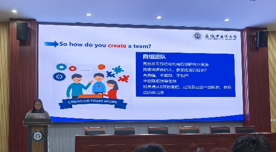 周昱瑋則聚焦備賽技巧,展示國家級金獎項目的PPT邏輯框架與視覺設計要點,拆解了項目書結構、排版等細節規范。針對學生關注的團隊組建問題,她建議跨專業、交叉領域組隊,導師早期介入,定期進度復盤。她強調了團隊協作的作用,以及在賽前賽后的良好心態。參賽者要以平常心、以學習的態度應對困難。在自由提問環節,兩位嘉賓就低年級學生如何積累經驗、如何尋找案例資料等話題進行解答,現場互動熱烈。