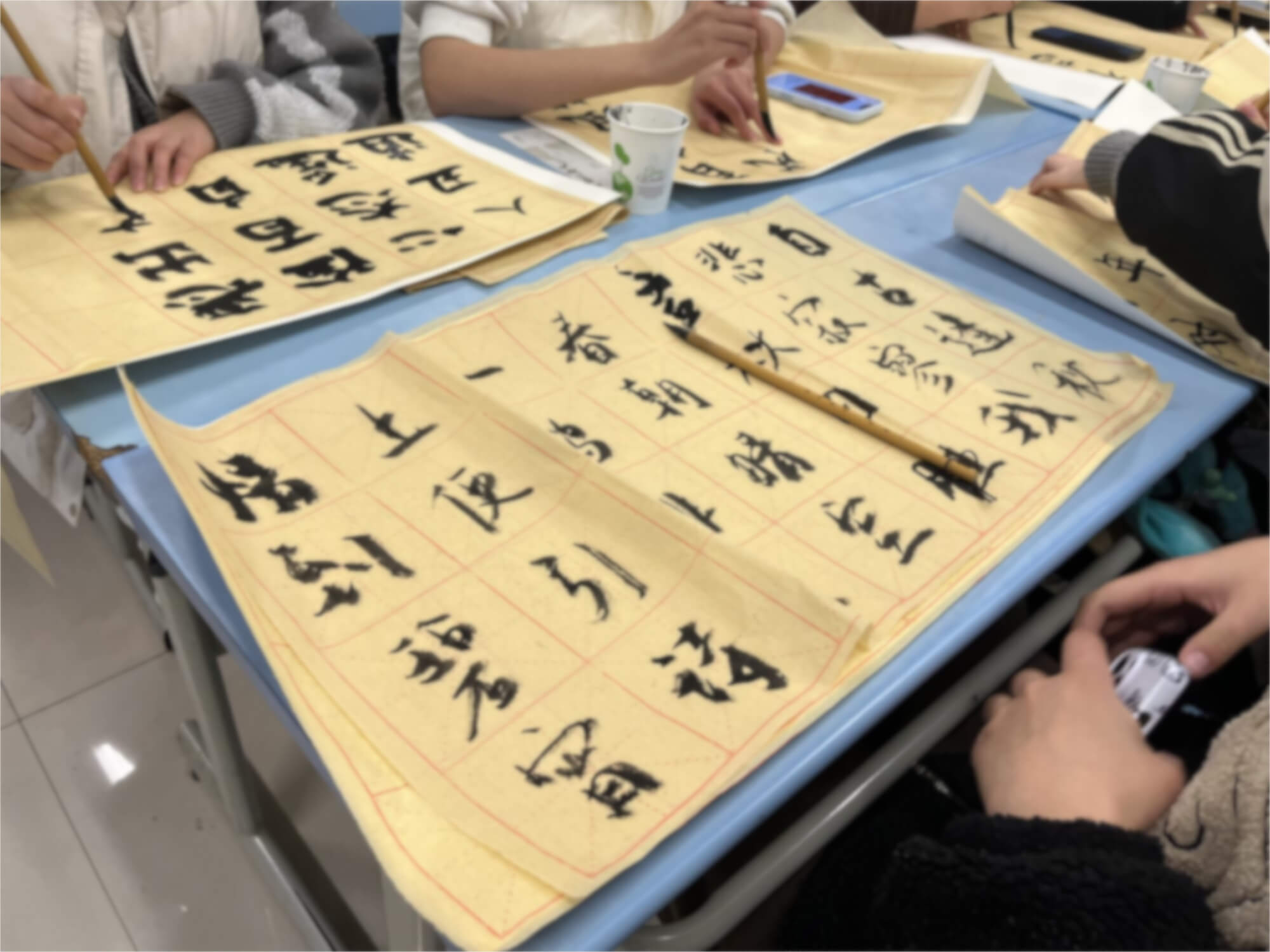 隨后,書法教學(xué)環(huán)節(jié)按計(jì)劃進(jìn)行。專業(yè)書法教師系統(tǒng)講解了書法基礎(chǔ)知識(shí),內(nèi)容包括執(zhí)筆姿勢、筆畫結(jié)構(gòu)、運(yùn)筆技巧及作品布局等核心要素。現(xiàn)場示范環(huán)節(jié)中,教師通過實(shí)物演示詳細(xì)解析了書法技法的關(guān)鍵要點(diǎn),并指導(dǎo)參與人員進(jìn)行基礎(chǔ)筆畫練習(xí)。活動(dòng)期間,所有參與師生均在指導(dǎo)下完成毛筆書寫實(shí)踐,初步掌握漢字書寫的規(guī)范流程。本次教學(xué)活動(dòng)通過理論講解與實(shí)踐操作相結(jié)合的方式,使師生對(duì)傳統(tǒng)書法藝術(shù)形成直觀認(rèn)知,有效提升了參與者對(duì)傳統(tǒng)文化的興趣與認(rèn)同感。