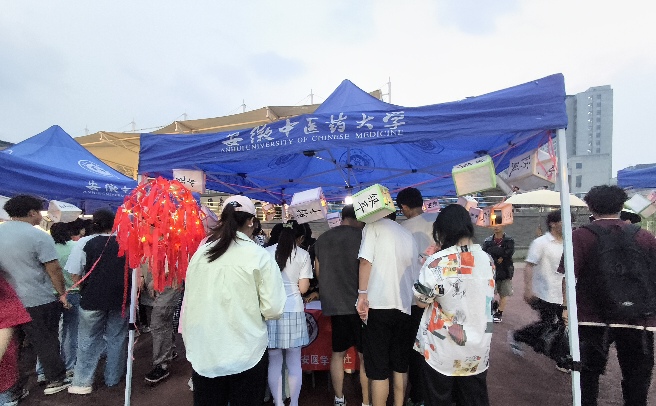 文化交融,共繪杏林畫卷。除新安醫學學社外,其他社團與俱樂部也各展所長:國學社的投壺捶丸、針灸學社的“毫針入包”挑戰、華佗愛心社的中醫藥燈謎……傳統技藝與現代創意交織,現場宛如一場中醫藥文化的嘉年華。晚20時,千盞花燈齊亮,剪紙燈、宣紙燈點綴夜空,參與者手持集章卡兌換花燈,歡呼聲此起彼伏,熱鬧非凡。