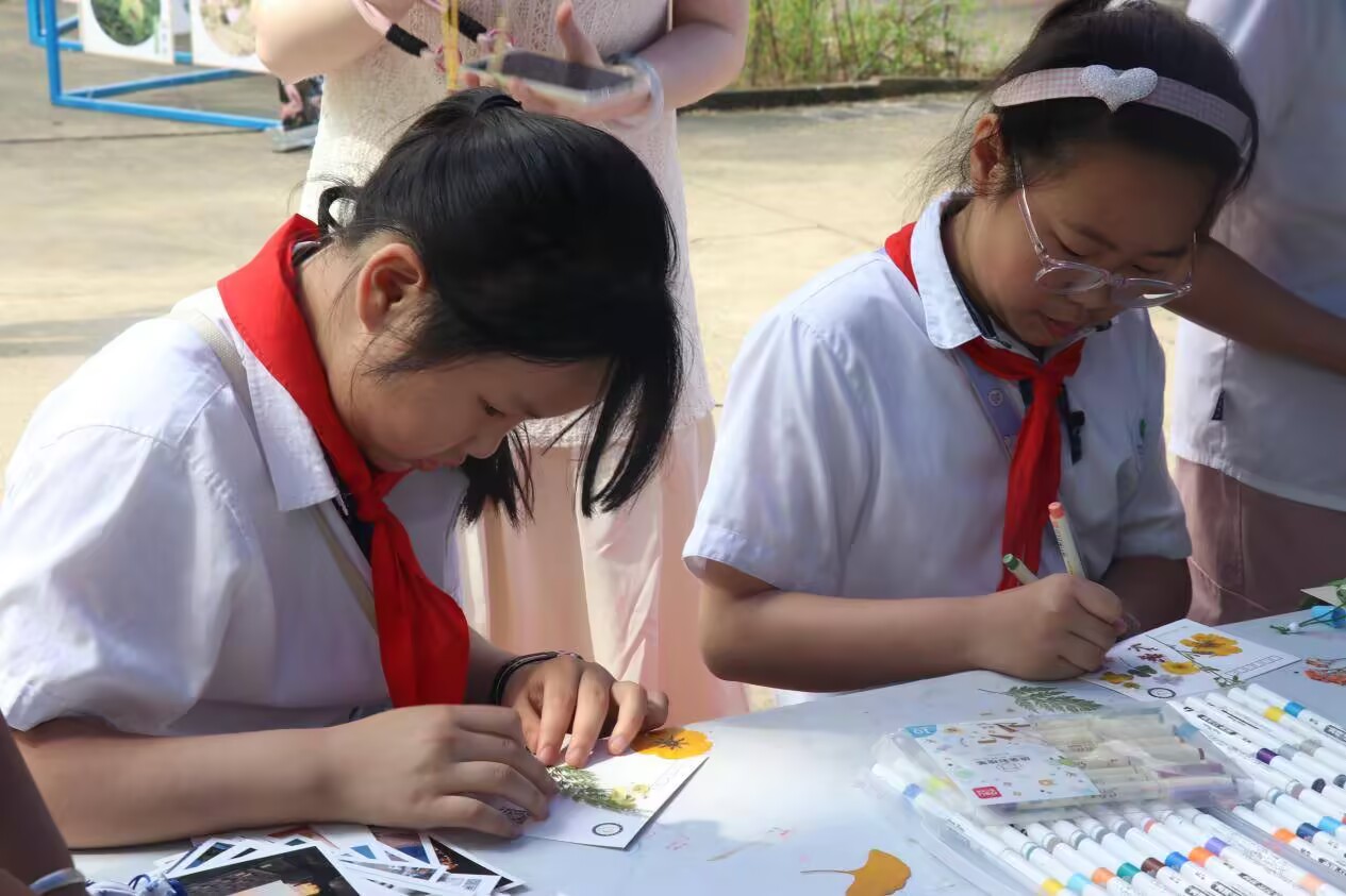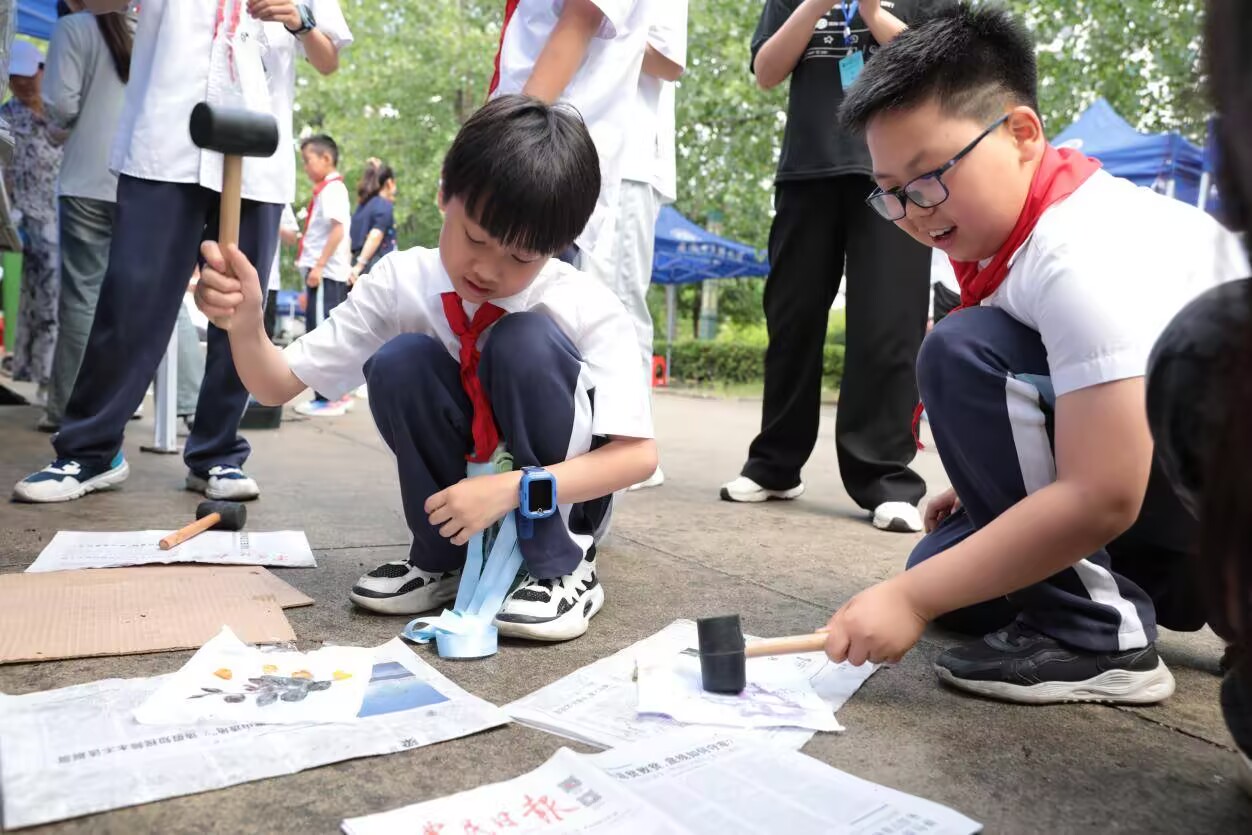 孩子們親手研磨藥材、調(diào)配雪花膏和痱子粉,感受中醫(yī)藥的實用價值;于“草木拓染”區(qū),他們以錘為筆、以布為紙,將植物紋理定格成畫。興華苑小學(xué)(相山路校區(qū))一名三年級學(xué)生興奮地說:“原來中藥不僅能治病,還能變成漂亮的飾品和好玩的手工!”七里塘小學(xué)帶隊教師表示:“這樣的活動讓孩子們近距離感受傳統(tǒng)文化,在他們心中種下了熱愛中醫(yī)藥的種子。”