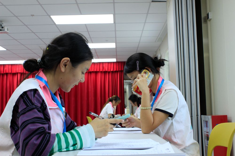 (圖為筑愛(ài)支隊(duì)隊(duì)員在對(duì)高齡長(zhǎng)者進(jìn)行電話慰問(wèn)/鐘栩祈攝)