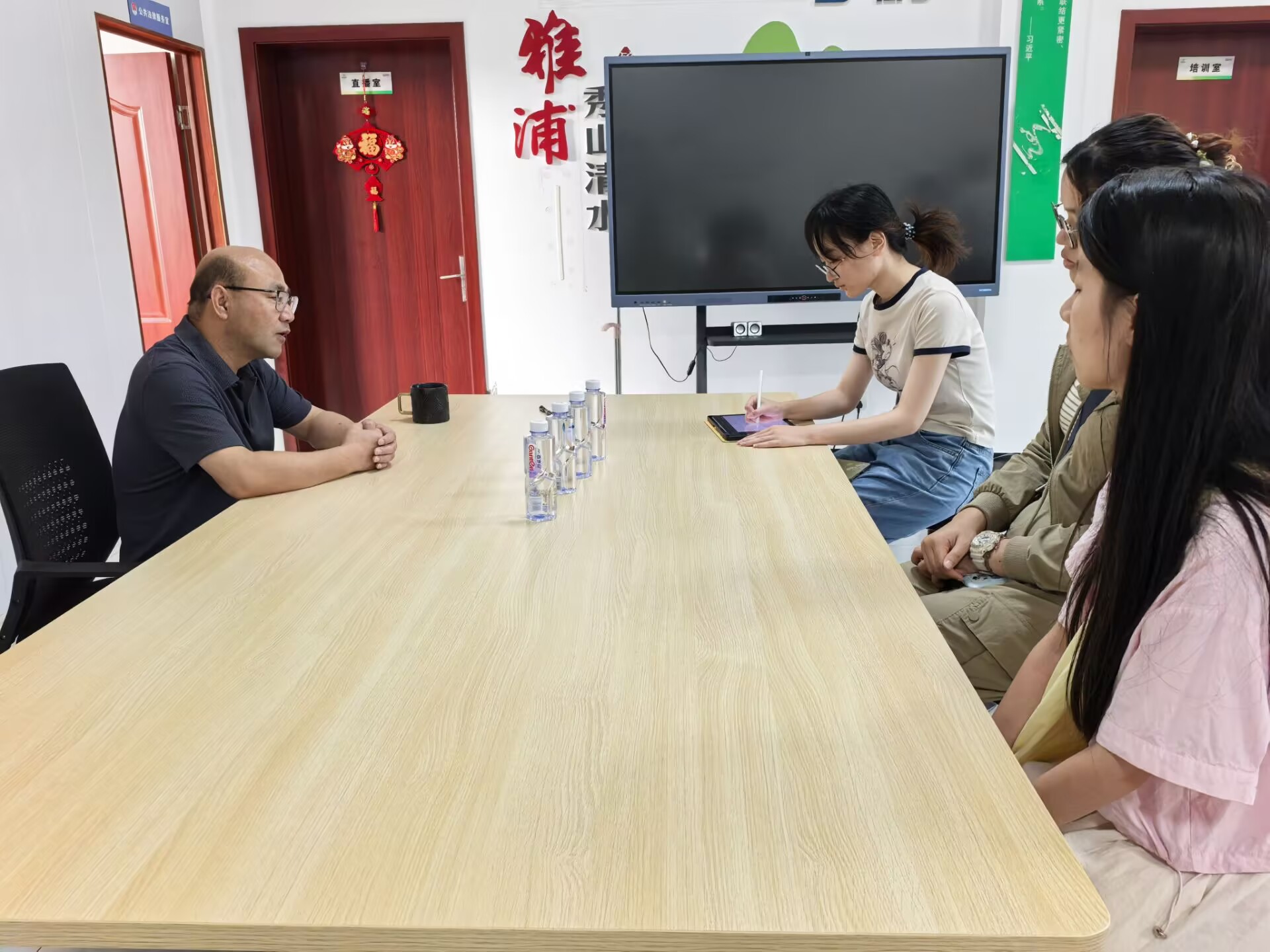 圖為團隊成員在雅浦村村委會與雅浦村書記訪談。孫佳藝 供圖