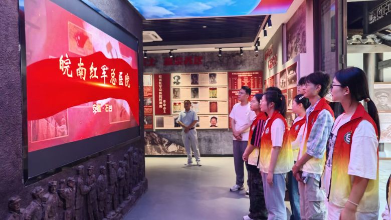 實踐團立足當地需求開展系列服務:在七都鎮村委會廣場搭建健康服務平臺,為村民提供免費血壓測量,并結合中醫養生知識給予個性化健康指導;走訪慰問當地老黨員,聆聽革命年代的奮斗故事,系統整理紅色口述史料;組織參觀皖南紅軍總醫院紀念館,通過沉浸式學習感悟革命先輩的奉獻精神。此外,團隊針對暑期安全熱點,開展兒童防溺水知識宣講課堂,同步走進敬老院開展暖心慰問,為老人進行健康檢查,用實際行動傳遞關懷。