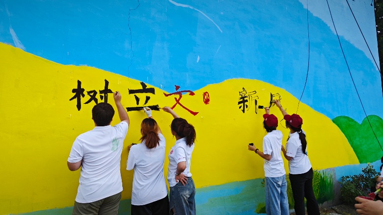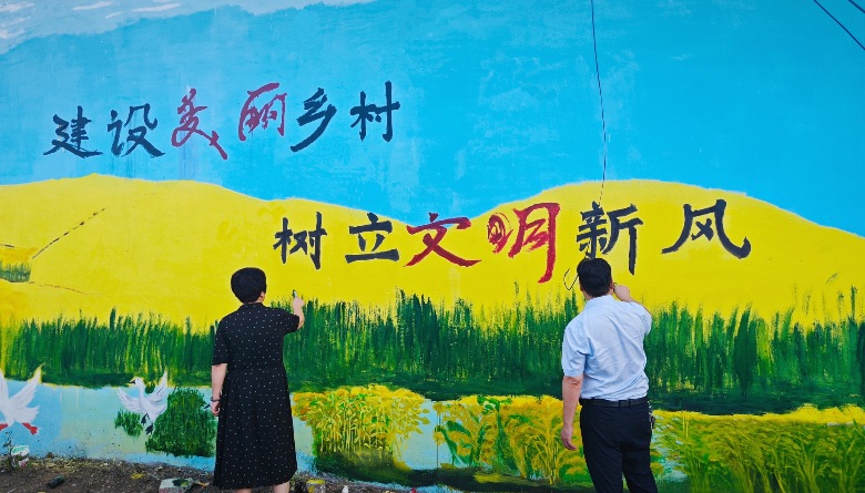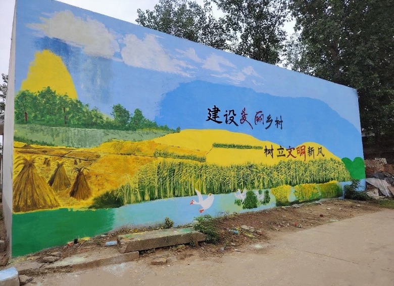 為了積極響應教育部專項活動和市團委“青耘鄉村”社會實踐活動號召,在夏餉鋪村的素色墻垣上,大學生團隊以“建設美麗鄉村 樹立文明新風”為靈魂主題,揮灑出鄉土煥新的藝術篇章。墻繪組深入村巷傾聽民意,將村民對家園的憧憬轉化為兩大視覺敘事:“美麗鄉村畫卷” 以金黃的麥浪、青藍的天空、池塘的白鵝勾勒生態宜居圖景;創作中,村民與孩童協助文明標語填色,使墻體成為代際情感與美育浸潤的載體。這道融合鄉土肌理與時代精神的風景線,以色彩重塑家園認同,以視覺語言助推鄉風文明,真正實現“美在環境,育在人心”。與此同時,在夏餉鋪村的樹蔭院落與田間巷陌,實踐學員手持記錄本深入走訪村民,通過方言與普通話交織的親切訪談,傾聽他們對鄉村變遷、教育現狀及語言習慣的真實心聲。這些鮮活的一手素材,不僅為墻繪創作注入民生意蘊,更讓文明倡導精準契合鄉土脈搏,使青春實踐真正扎根大地。