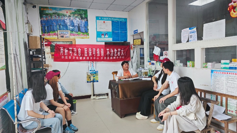 圖為實踐隊員走進村鎮衛生室進行調研訪談