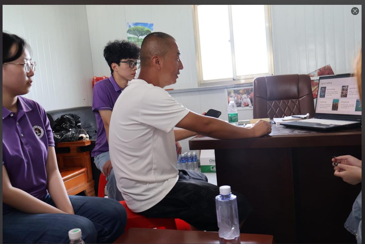 (圖為7月10日“碧海青耘,向海而興”藍(lán)海筑夢實踐隊學(xué)生們向養(yǎng)殖戶了解尾水排放的危害。姜一凡供圖。)