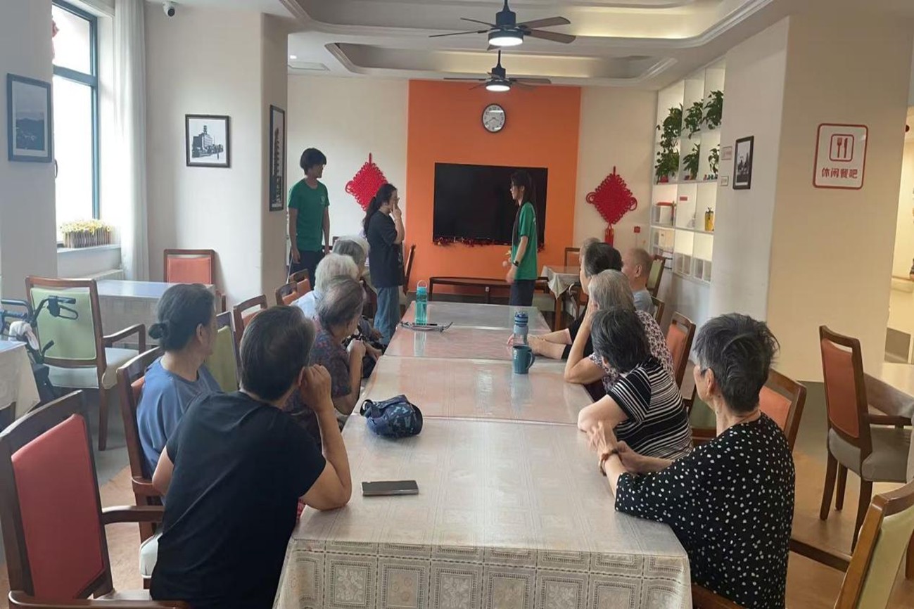 早晨實踐團抵達養老院,開始了一天充實而有意義的志愿服務。九點鐘,二樓的三位志愿者首先組織老人們進行拍拍操活動。老人們積極參與,臉上洋溢著幸福的笑容。拍拍操不僅幫助老人們舒展了筋骨,更拉近了志愿者們與老人們之間的距離。