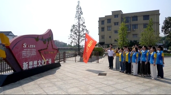 在新思想文化廣場,實踐團全體成員高舉右拳,懷著崇敬之心莊嚴宣誓:矢志傳承紅色基因,以青春擔當投身鄉村振興事業。