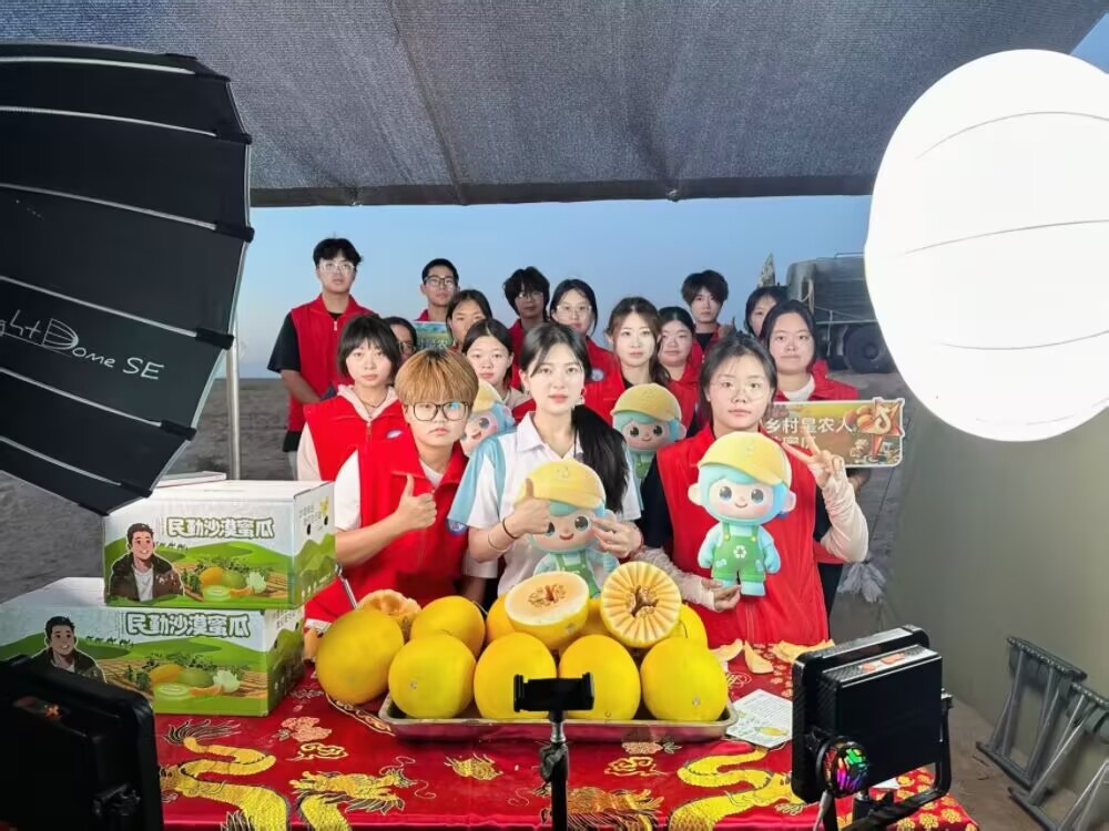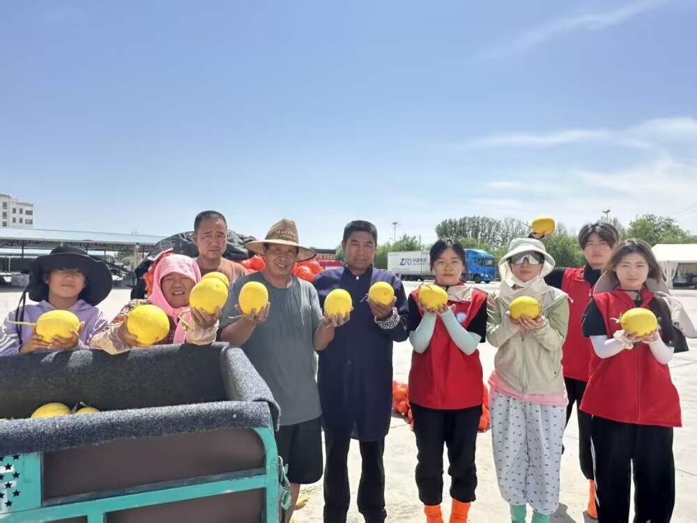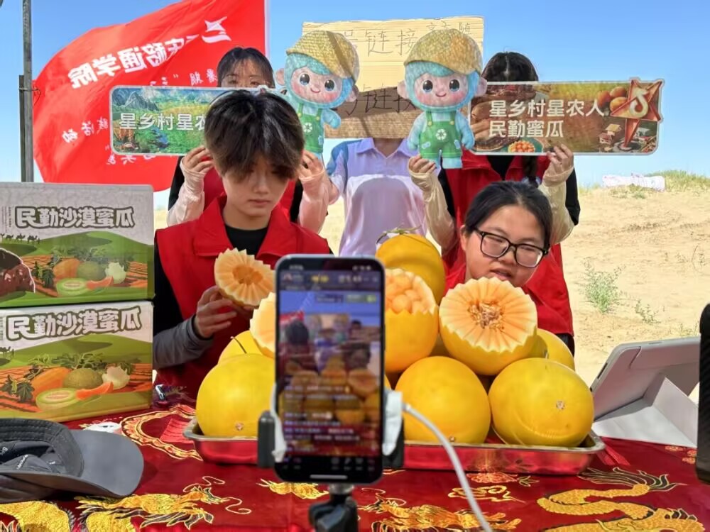 午后兩點,隊員們以沙漠為背景支起直播架,同學對著鏡頭試吃第一口蜜瓜,汁水順著勺子滴落,彈幕瞬間刷屏:“看起來就甜!”“已下單!”