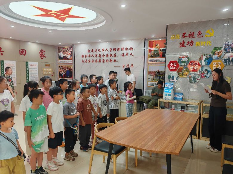 2025年7月9日,山東大學(xué)小樹林市中泉韻支教隊帶著滿腔熱忱,引領(lǐng)著一群朝氣蓬勃的孩子們,走進(jìn)了二七新村街道退役軍人服務(wù)站。這是支教活動開展的第三天,一場主題鮮明、內(nèi)容豐富的紅色教育實踐活動在此展開,旨在通過沉浸式的體驗學(xué)習(xí),在孩子們心中播撒下紅色的種子,讓愛國情懷深深扎根。