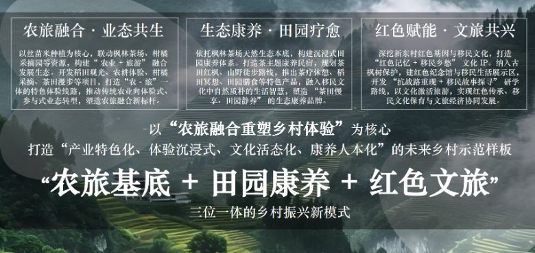 規(guī)劃緊扣“農(nóng)旅融合重塑鄉(xiāng)村體驗(yàn)”核心,立足新東村自然稟賦與產(chǎn)業(yè)基礎(chǔ),融合城鄉(xiāng)規(guī)劃學(xué)與風(fēng)景園林學(xué)專業(yè)理念,構(gòu)建“門戶形象區(qū)、一河兩岸濱水景觀帶、絲苗米稻田種植區(qū)、柑橘采摘體驗(yàn)區(qū)、楓林茶場(chǎng)-康養(yǎng)民宿區(qū)”五大功能區(qū),形成“產(chǎn)業(yè)特色化、體驗(yàn)沉浸式、文化活態(tài)化、康養(yǎng)人本化”的未來鄉(xiāng)村示范樣板,推動(dòng)“農(nóng)旅基底+田園康養(yǎng)+紅色文旅”三位一體發(fā)展。方案充分考慮了當(dāng)?shù)氐膶?shí)際情況,確保規(guī)劃既美觀又不影響農(nóng)業(yè)生產(chǎn),真正做到了專業(yè)知識(shí)與鄉(xiāng)村實(shí)際的有機(jī)結(jié)合。