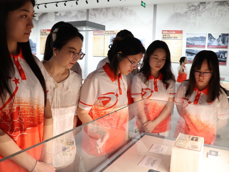 ▲圖為實踐隊員在四渡赤水太平渡陳列館開展紅色文化主題教育活動