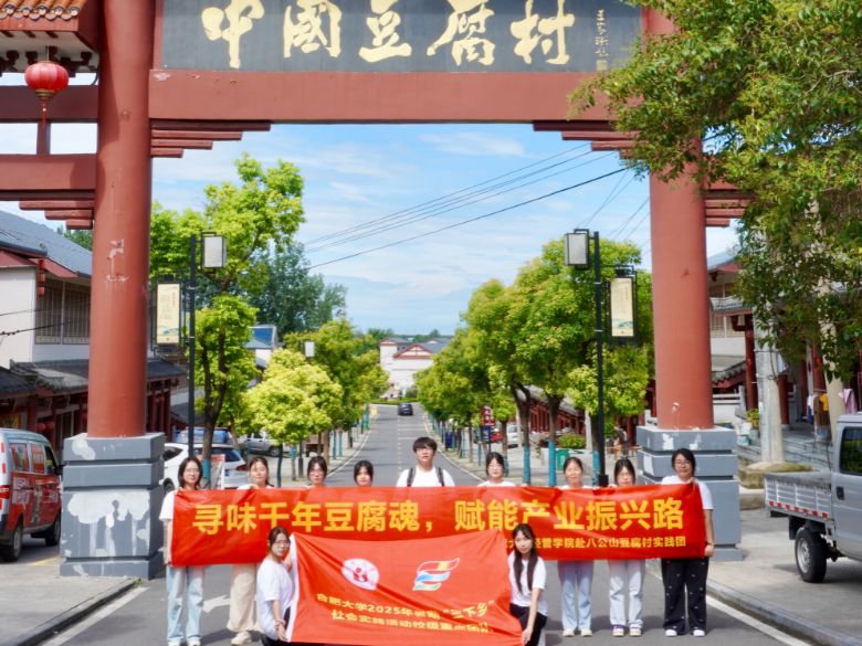 為深入探究淮南市八公山鄉村豆腐產業的發展現狀,剖析傳統工藝與現代科技的融合路徑,引導社會聚焦豆腐產業可持續發展這一關鍵議題,為鄉村振興注入新動力,合肥大學經濟與管理學院“合啟淮章”團隊于2025年6月29日前往奔赴淮南市壽縣八公山鄉,開展了一場意義非凡的學習調研之旅。團隊成員們先后走進中國豆腐村、豆腐主題文化園、淮南王劉安墓以及珍珠泉等地,全方位、沉浸式地探尋豆腐文化的根源與魅力。