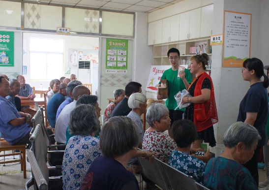 依托中心大屏電視,實踐團以“共享綠色家園,共享生態文明”為主題開展生動宣講,圖文并茂普及節水護水、凈村美居與清潔能源知識,深化村民生態理念。聚焦“綠動向陽,分類美好”,成員們詳細解析“兩次四分法”垃圾分類技巧。現場老人紛紛表示:“如今村里環境大變樣,有了固定投放點,大家也更自覺了。”宣講后,中心工作人員協助分發垃圾分類手冊及生活物品,老人們認真研讀,與成員深入交流,現場氛圍熱烈,知識悄然入心。