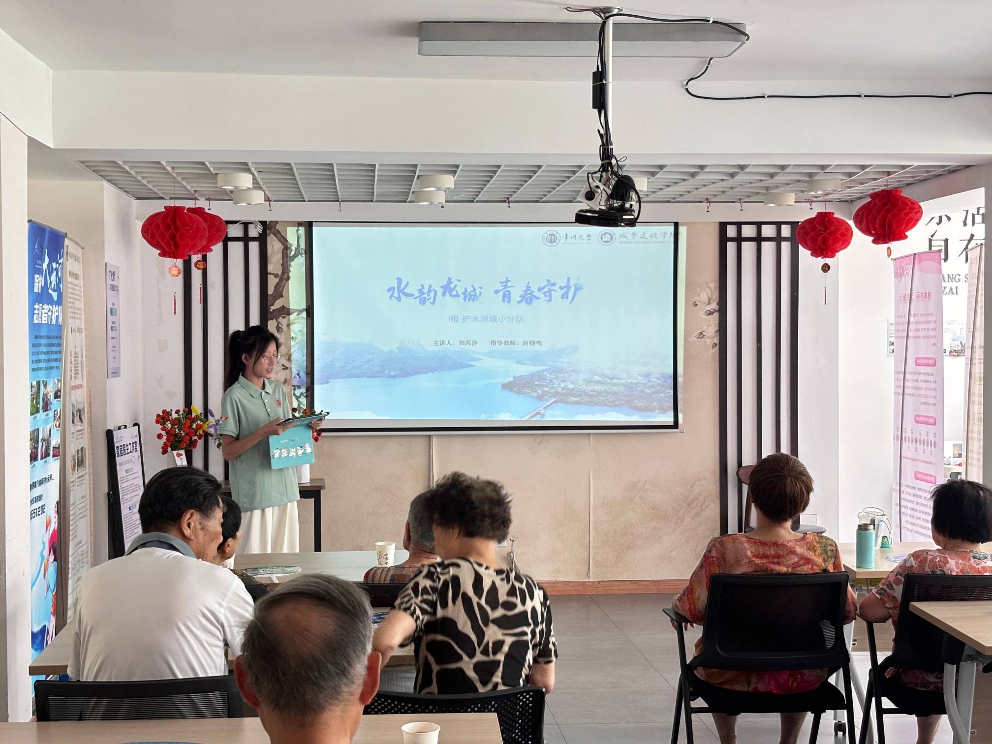 7月7日,團隊面向廣化橋社區老年群體舉辦“守護母親河,傳承運河魂”主題宣講。聚焦水污染危害與家庭節水技巧,實踐隊員用通俗語言和生活案例,講解大運河對城市發展的歷史意義與保護運河生態的緊迫性,通過互動問答的方式引導老人分享與運河相關的生活記憶,結合老年生活場景,提出家庭節水、垃圾分類小妙招,鼓勵老人擔任“社區監督眼”,及時反饋周邊水環境狀況。活動引發共鳴,有效激發了老年群體參與運河保護的熱情,老年居民表示將帶動家人參與保護,共同守護河清岸綠的美好家園。