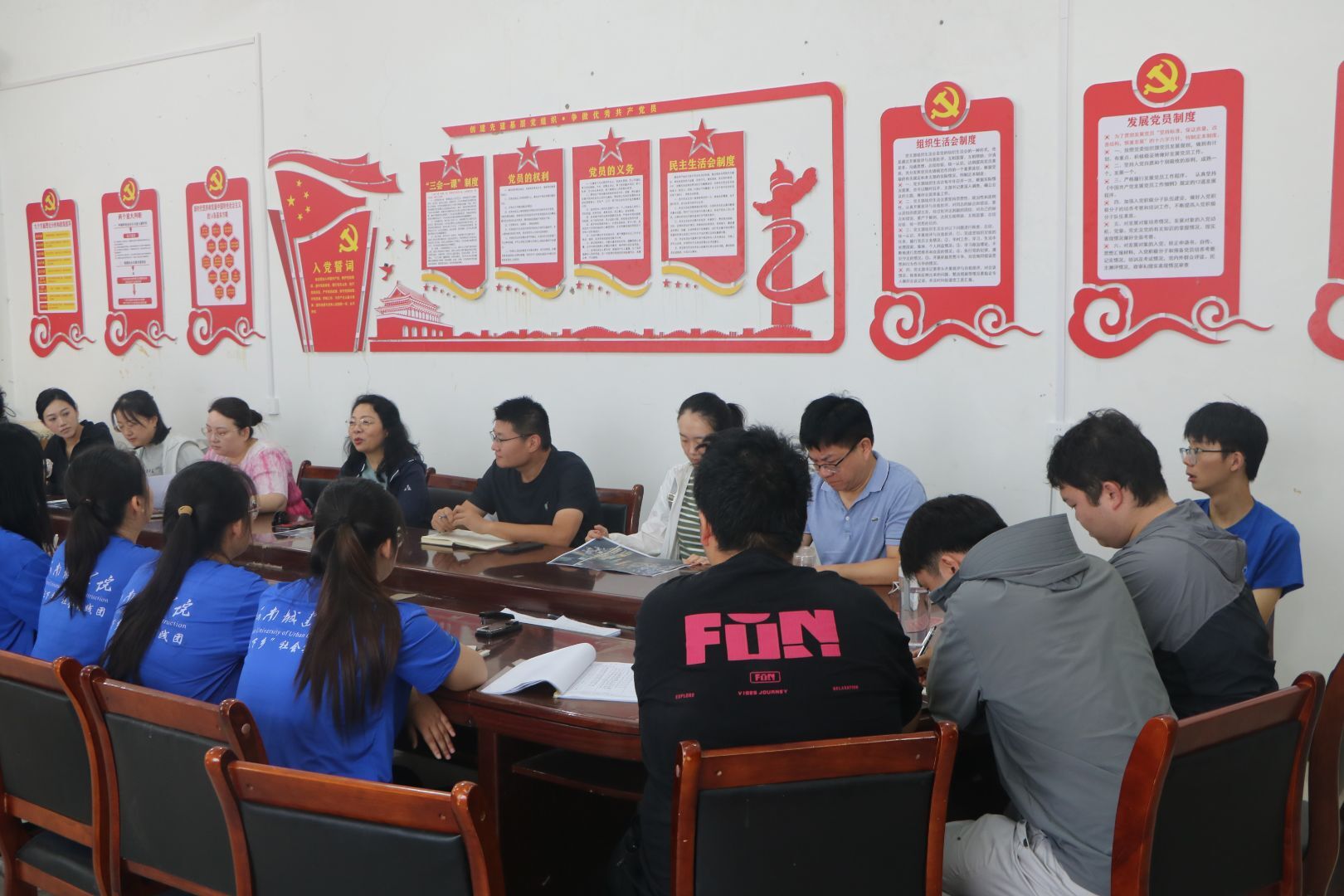 圖為三下鄉實踐團隊師生對實地考察現狀進行總結研討