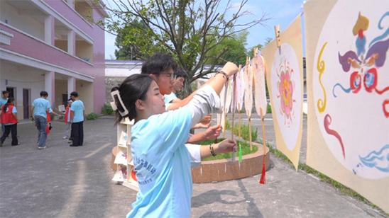 此次美育課堂,成員們以設計為橋,將千年敦煌的華彩與藍印的質樸引入童真世界,讓拓印的韻律與漆扇的光澤浸潤童心。這不僅是一場生動的美育實踐,更是一次深刻的文化浸潤,成為青年學生以實際行動參與到“鄉村文化振興”國家戰略的現實體現。