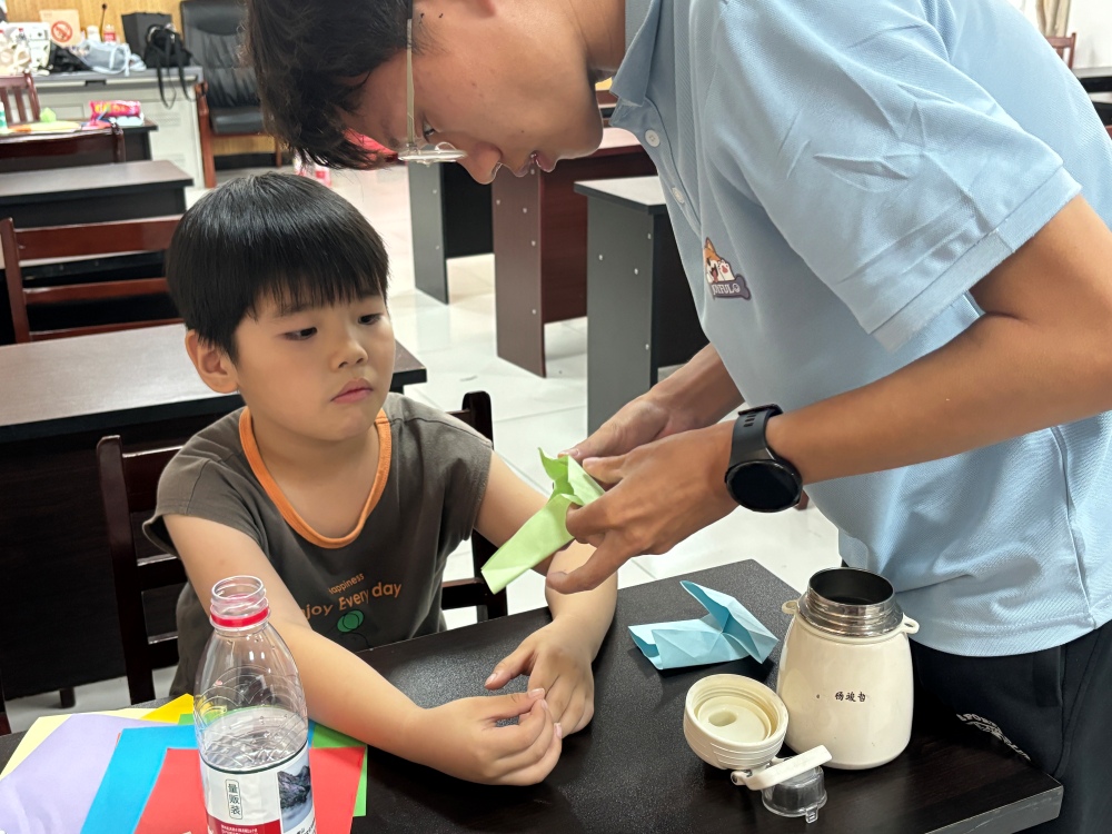 手工制作課程成為孩子們釋放想象力的天地。志愿者為小朋友們提供了折紙以及扭扭棒等手工材料,五顏六色的折紙被制作成有活力的花朵和樹葉。手工課不僅培養了孩子們的動手能力,更讓他們感受到創意實踐的樂趣。