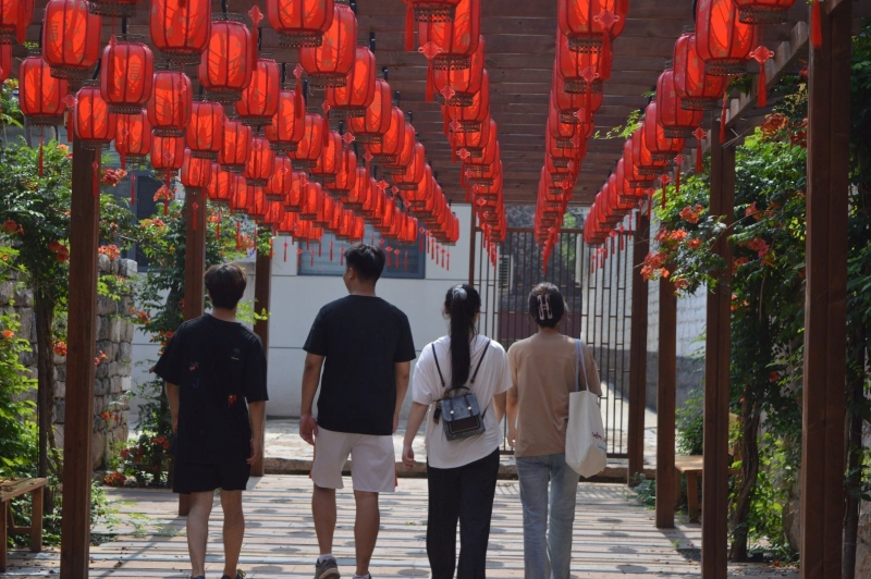 圖為煙育菏夢部分成員參觀魚山新村的景色。李健哲 供圖