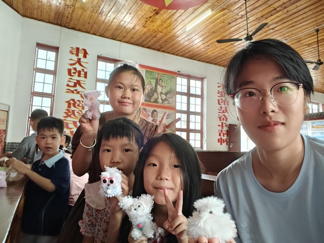 7月11日下午,陽光穿過共大禮堂的木窗欞,在青磚地面上織出細碎的光斑。“贛江源·青春筑夢”實踐團的成員們與村里的孩子們一同沉浸在扭扭棒的奇妙世界里。彩色塑線在指尖翻飛,實踐團成員們耐心教著纏繞的技巧,小朋友們舉著剛做好的蝴蝶、小熊歡呼雀躍。銀鈴般的笑聲漫過斑駁的舞臺,與梁上“團結(jié)奮進”的標語相映成趣,定格成一幀滿是暖意的畫面。