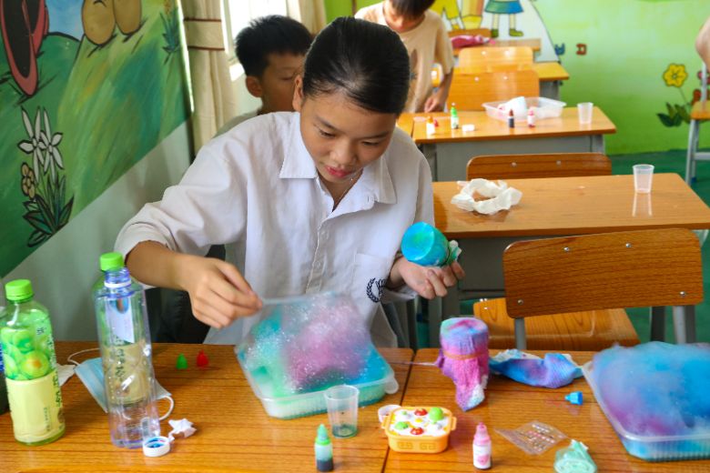 趣味實驗啟智:在色彩與奇妙現象中探索科學奧秘 微塵・心公益服務隊的隊員們不僅為孩子們帶來了系統的性知識科普,更以生動有趣的科學實驗課,為課堂注入了探索未知的活力。