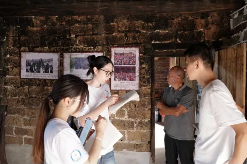 在二渡水村,調研組成員圍繞黃靜源故居對二渡水村發展的影響、紅色精神的傳承等問題開展調研,通過采訪廖凱麗了解此故居的基本情況。