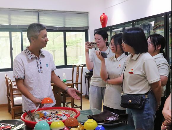 思想碰撞:傳承人的守正與創新在剪瓷雕陳列館與沈氏大宗祠“饗保堂”,福建省省級剪瓷雕工藝(詔安)第五代傳承人沈錫仁與隊員們展開了一場傳統與現代的深入對話。陳列館內,沈老師不僅向隊員們解析剪瓷雕技藝的技術精髓,更分享了他將人工智能技術與傳統技藝融合的創新構想,展現出非遺傳承人立足傳統、開拓創新的前瞻視野。實踐隊員小湯表示,“沈老師對藝術的熱忱,對傳統工藝傳承發展的深刻思考,讓我對非物質文化遺產的保護與創新有了全新的認識。”