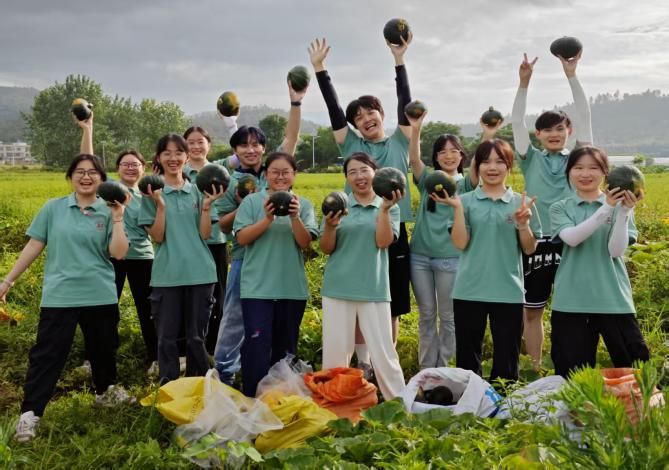 厚植愛農情懷,練就興農本領。實踐團隊走進了鄉村田間,開展助農采摘活動。在村民手把手指導下,隊員們從生澀地辨認成熟瓜果,到逐漸掌握精準采摘的技巧,竹筐里的南瓜、西瓜越堆越高。看著裝滿收獲的筐子,老人們瞇起眼笑出了皺紋,這抹樸實的笑意,成了對隊員們最實在的認可;顒又,隊員們用手機記錄下田埂上的勞動場景,一段段真實的短視頻讓更多人看到了鄉村實踐的模樣,也帶動著越來越多的人加入助農隊伍。