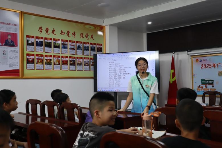 “美哉,我少年中國,與天不老!壯哉,我中國少年,與國無疆!”7月11日,德慶縣香山村黨群服務中心的課堂里傳出朗朗書聲,佛山大學人文學院“薪火之隊”義教組成員正帶領孩子們朗誦梁啟超的《少年中國說》。為發揮語言文字在鄉村振興中的基礎性作用,薪火之隊在此持續開展“普通話小課堂”,以生動有趣的形式助力鄉村少年提升語言能力。