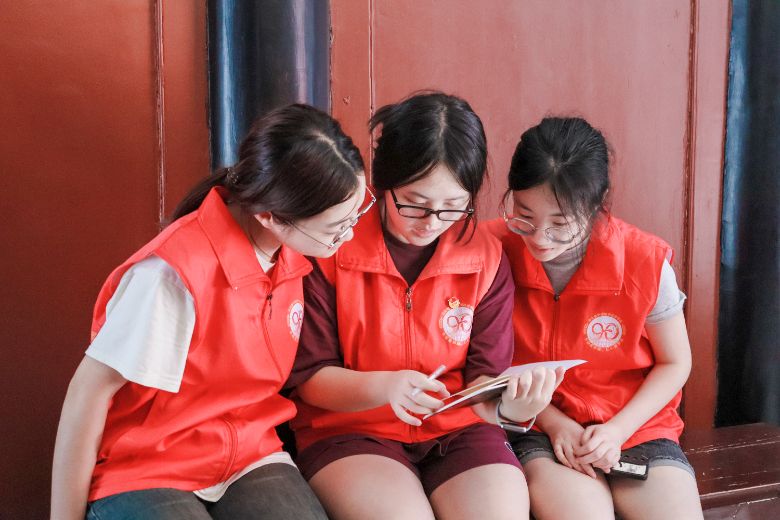 圖為筑夢團成員相互探討記錄所感所悟 張丹攝