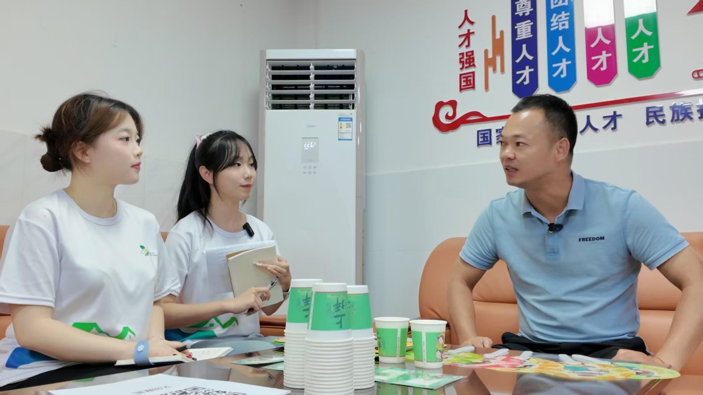 活動當天,團隊先后采訪了上坪鎮黨委副書記戴杰昌和農業農村辦公室葉秉鑫,圍繞“青春創意點亮綠色上坪”展開深入交流。黨委副書記戴杰昌提到,上坪鎮是“典型鎮”有文創設計相關考核目標。強調文創設計傳播的三個重點:“標識、屬性、文化”。除此之外,戴杰昌書記還強調鎮黨委將全力支持青年團隊以文化創意盤活本土資源,打造“紅色龍川·生態上坪”特色品牌,推動“百千萬工程”在基層落地見效。最后,農業農村辦公室葉秉鑫指出:“上坪鎮生態資源豐富,但不僅需傳統設計文創IP,還需要開發更多上坪的特色資源,設計文創IP為農旅產業注入年輕活力。”