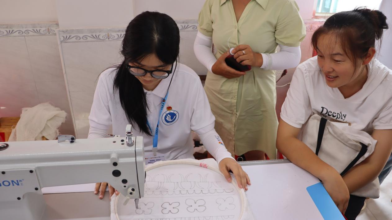 調研實踐環節,團隊考察古法紅糖制作工藝及苗家湘繡記錄傳統技藝。此外,團隊還開展AI知識普及活動,向村民演示智能工具應用,助力鄉村數字化發展。