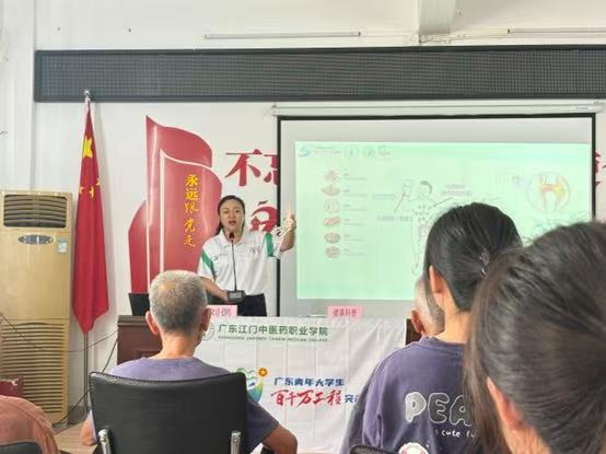 飲食是影響尿酸水平的關鍵因素。廣東江門中醫藥職業學院的劉偲老師則聚焦村民常見健康困擾,開展“三高”、痛風專題科普講座。講座中,劉偲老師用通俗易懂的語言,從日常飲食結構失衡、運動量不足等誘因切入,結合真實臨床案例,詳細剖析“三高”與痛風的發病機制、典型癥狀及潛在危害。不僅給出科學的飲食搭配方案,還強調定期體檢、規律作息的重要性,幫助村民們樹立“早預防、早發現、早治療”的健康理念。這次講座旨在提升村民的健康素養,增強疾病自我管理能力,助力鄉村健康振興。