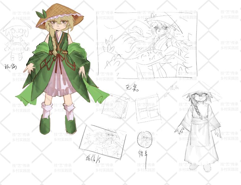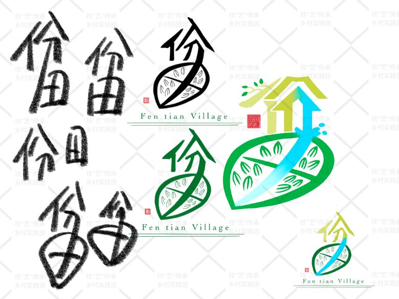 與此同時,設計組成員在駐地緊鑼密鼓地開展工作。他們基于對本地客家文化、古茶樹特性及茶葉形態的深入調研,著手設計IP形象。核心構思巧妙融合了圍屋的穩重輪廓與茶葉的優雅舒展線條,力求生動展現呂田茶的本土根脈。