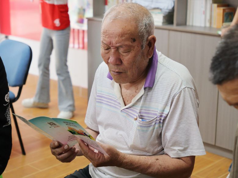 ▲圖為老年人正在閱讀科普宣傳手冊。鐘海欣 供圖
