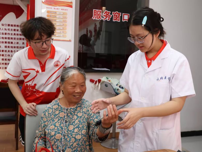 義診服務區前,居民們熱情高漲,紛紛排隊等候檢查。隊員們一邊普及高血壓糖尿病等慢性病知識,一邊熟練操作專業設備。腕式電子血壓計在“一拉、一圍、一緊”的簡單操作下,精準呈現高壓、低壓數值及脈搏情況;新型血糖儀通過“一擦、一采、一吸”的便捷流程,清晰顯示血糖結果。整個義診過程高效有序,隊員們還貼心地為老人們記錄檢查數據、提供健康建議。活動尾聲,隊員們為參與活動的老人送上實用的生活用品,老人們握著隊員的手,不住地夸贊:“你們這些娃娃,真是幫了我們大忙!”