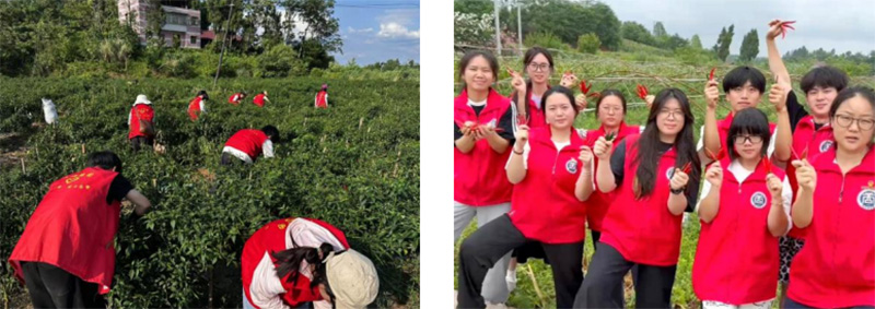 潔凈啟程,以心連心筑根基 7月6日上午,隊員們迅速投入工作狀態。他們拿起掃帚、抹布,細致清掃廣場、廚房等生活場所,認真擦拭課桌積塵,用汗水為孩子們打造整潔明亮的學習空間。時刻與當地村委緊密對接,他們主動與陸續到來的小朋友們親切交流,登記小朋友們的信息。一聲聲笑語中,逐漸熟悉起來,信任與期待的橋梁在互動中穩穩架起,為后續教學活動的順利開展奠定了溫暖而堅實的情感基礎。下午,時值農忙季節,隊員們深入田間地頭,在巍峰村支部書記周玲梅的指導下學習采摘辣椒技巧,通過親身體驗基層生活,真正理解了“勞動最光榮”。