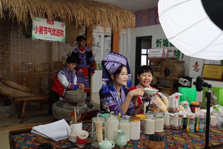 7月11日,廣西職業(yè)師范學(xué)院工商管理學(xué)院“三下鄉(xiāng)”社會(huì)實(shí)踐團(tuán)13名師生來(lái)到忻城縣“農(nóng)特產(chǎn)品展示中心”。他們依托專業(yè)所學(xué),在忻城鄉(xiāng)村特產(chǎn)中心開(kāi)展了一場(chǎng)別開(kāi)生面的直播帶貨體驗(yàn)活動(dòng)。此次活動(dòng)為地方優(yōu)質(zhì)農(nóng)產(chǎn)品插上“云翅膀”,拓寬了鄉(xiāng)村振興新路徑。鏡頭前,身著精美壯錦元素服飾的學(xué)生熱情洋溢,向云端觀眾展示著忻城鄉(xiāng)村特產(chǎn)中心的寶藏產(chǎn)品。