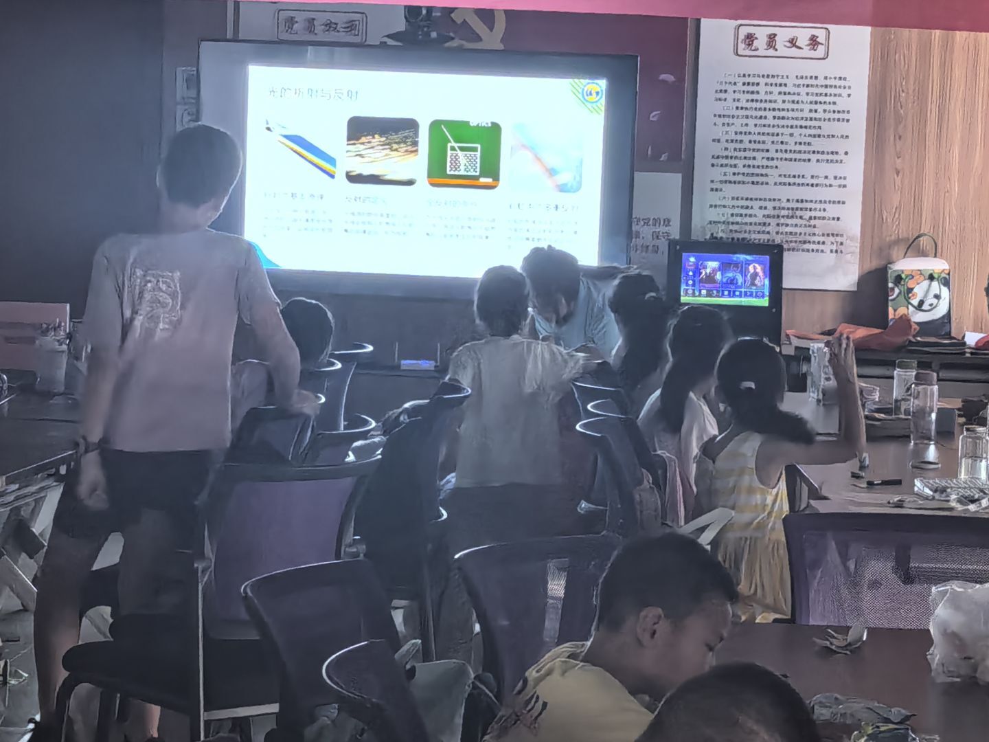 7月10日下午四點,武漢理工大學“熱血啟智”三下鄉實踐隊的隊員們走進中央花園小區居委會暑期愛心托管班,為孩子們帶來了一堂生動有趣的光學知識課,用科學的魅力點亮了夏日午后。