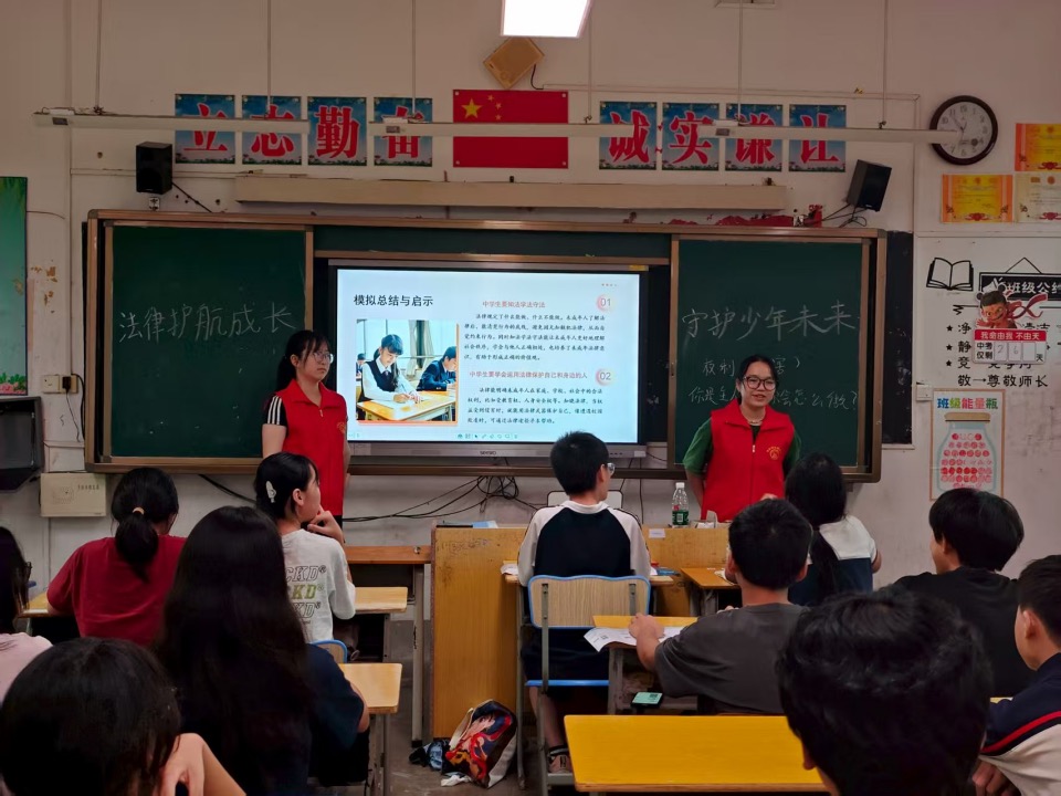 “情景模擬+法律運用”收尾。同學們分組演練維權場景,在演練過程中,做到“有理有據維權”并將知識轉化為“防身技能”。他們不僅能引用法律條款、尋求老師幫助,更能清晰表達“國家有政策助我克服困難”。這一刻,法律與保障政策共同鑄就了青春的堅實鎧甲,守護少年們面對風雨亦能穩穩站立,捍衛自己的受教育權與未來發展的晴朗天空。