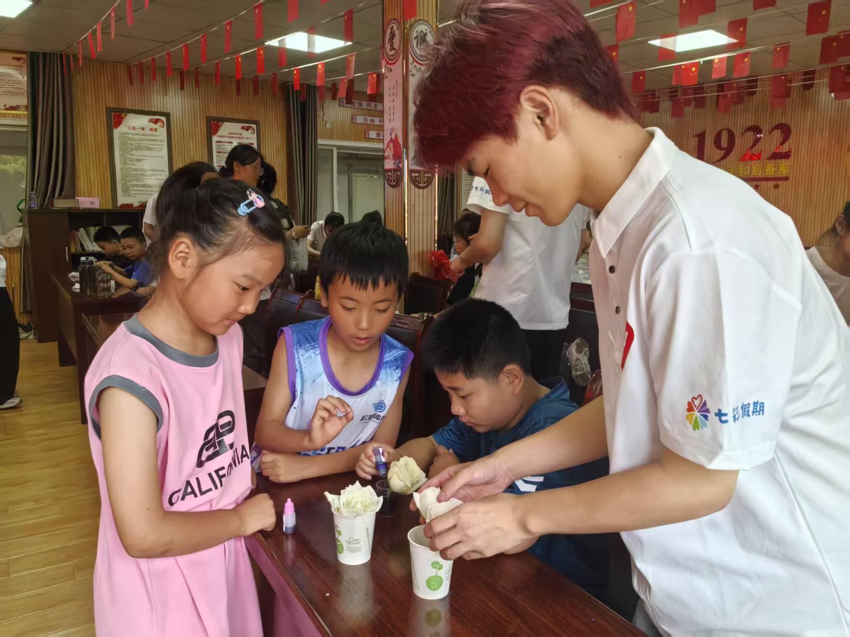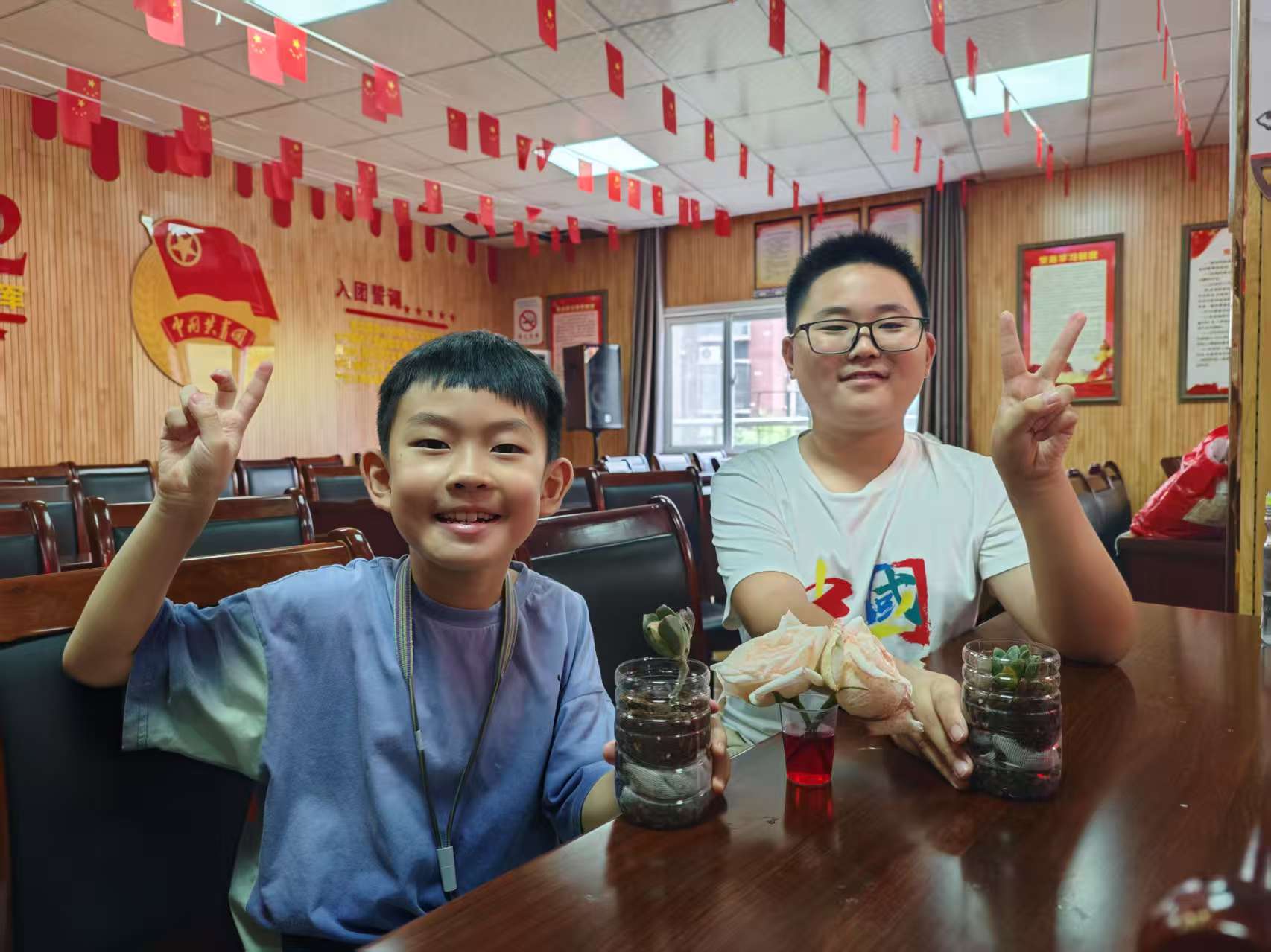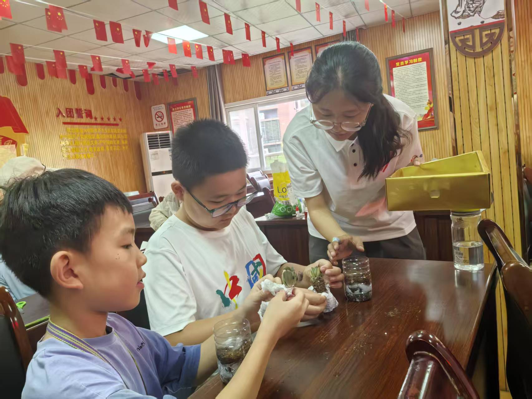在社區活動中心,隊員們帶領小朋友們動手制作生態瓶,將土壤、綠植、小石子等材料巧妙組合,打造出一個個微型生態系統。