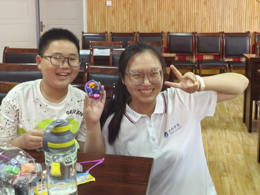 在歡聲笑語(yǔ)中,一個(gè)個(gè)色彩斑斕、形態(tài)各異的細(xì)胞器模型逐漸成型。小朋友們舉著自己的作品,興奮地向志愿者和同伴介紹:“線粒體是動(dòng)力工廠”“葉綠體能制造養(yǎng)分”,眼中閃爍著對(duì)科學(xué)的好奇與創(chuàng)造的自豪。