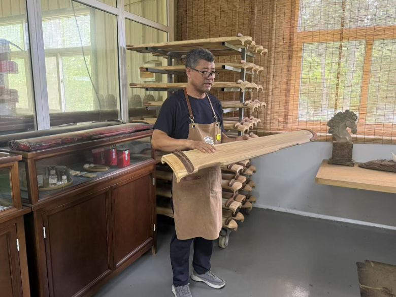 圖為孫萬福老師展示古琴制作細節。李佳靜 供圖