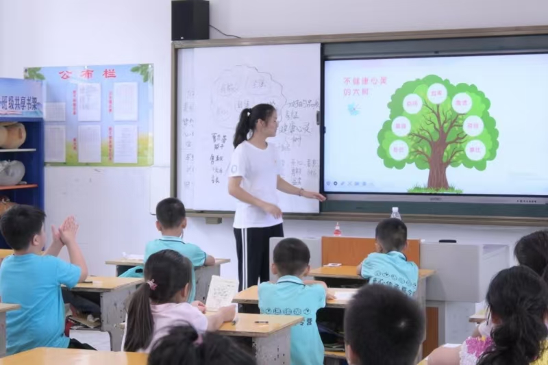 尹鑫引導學生認識自我、探索職業,介紹了多種職業并強調其價值,通過“猜猜職業”、“島嶼職業匹配”等互動環節,為學生們的職業規劃提供參考;王聰以孫悟空的故事引入,講解法律定義、法律知識、行為規范及維權方法;陳慧娟闡述了心理健康的定義,并通過讓學生繪制健康與不健康心靈的大樹,幫助學生理解心理健康。