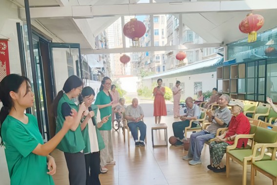 7月2日下午,考慮到老人們上午已耗費(fèi)不少精力,他們決定為老人表演才藝。負(fù)責(zé)人早已備好音響和話筒,大家先唱起了《青花瓷》《我和我的祖國(guó)》等歌曲,這些演唱贏得了老人們熱烈的掌聲。望著老人們臉上洋溢的笑容,他們的歌聲里也透露出濃濃的愉悅。