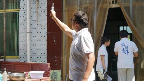 車窗外的風景從城市樓宇漸變為梯田溝壑,當柳泉口村的石碑映入眼簾時,隊員們手中的測溫儀早已躍躍欲試。村口的老槐樹底下,幾位納涼的老人搖著蒲扇,看到我們胸前的實踐隊徽章,熱情地招呼著:“娃們是來瞧房子的?咱這老屋子冬暖夏涼,可有講究哩!” 第一站是村民王大爺的家。青瓦土墻的院落里,幾株石榴樹投下斑駁的光影。隊員們兵分三路:城鄉規劃專業的同學丈量房屋朝向與開窗尺寸,環境工程的伙伴記錄實時溫濕度,而手持紅外熱像儀的隊員則專注于墻體表面的溫度分布。