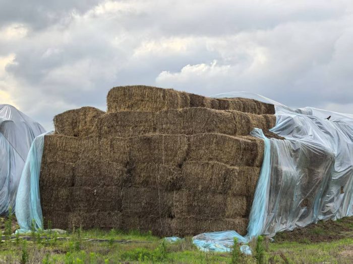 圖為團隊成員拍攝的集中收集放置的秸稈扎捆。王芳 供圖