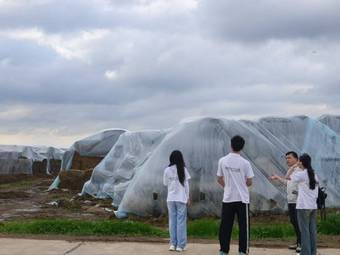 圖為史一功書記帶領團隊成員講解介紹秸稈的利用。葉語茹 供圖
